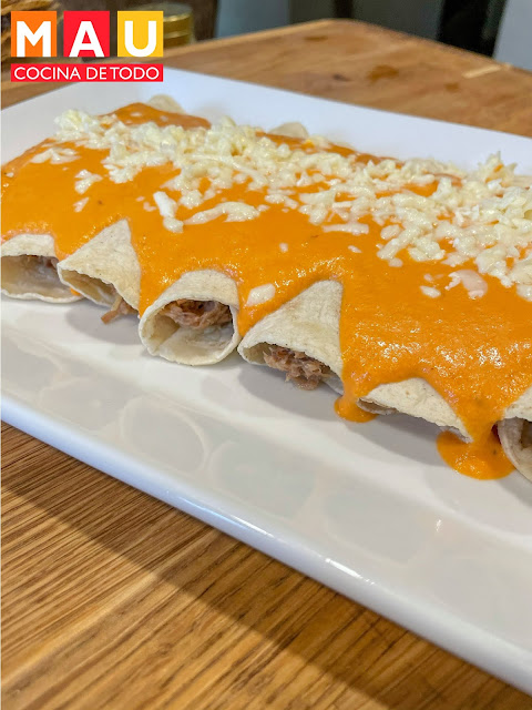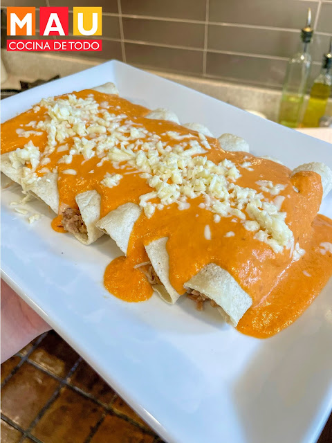 Me encantan las enchiladas suizas y el chipotle así que hice unas enchipotladas cremosas muy buenas. Puedes no agregar la crema y el queso y solo bañarlas en la salsa de tomate con chipotle pero a mi me gustaron así cremositas.