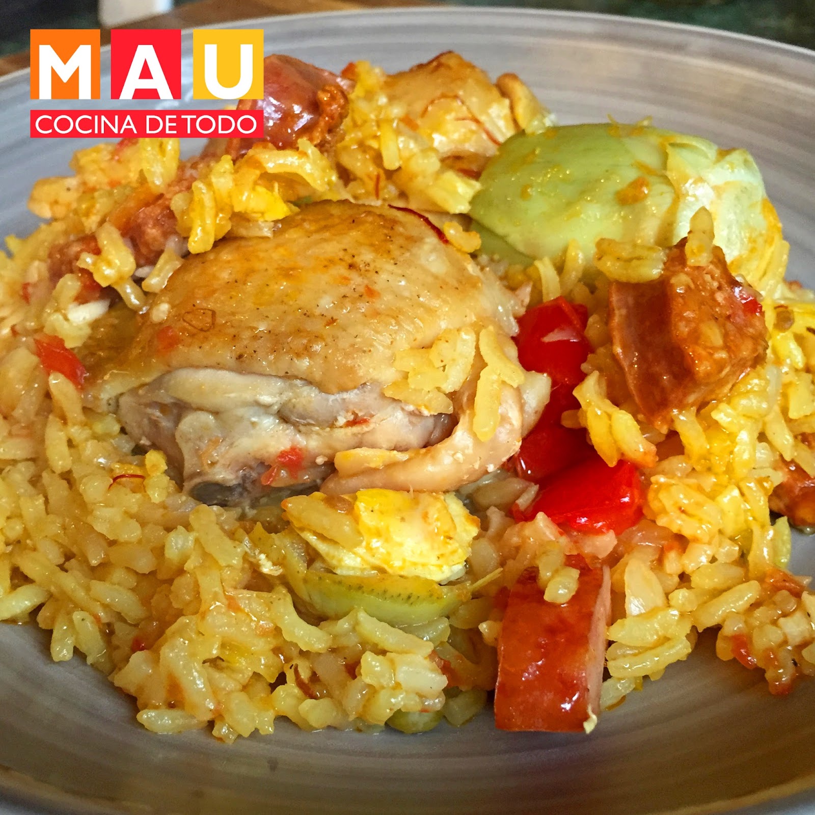 Hay muchas maneras de preparar la paella si con mariscos, pollo, chorizo, cerdo, pescado. Esta la hice de pollo y chorizo español. Una delicia.