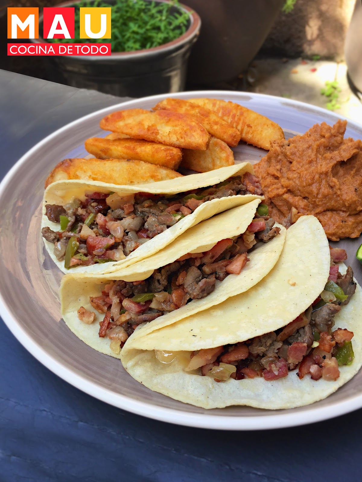 -Calienta las tortillas con o sin queso y rellena con la carne. Acompañando de frijoles refritos.