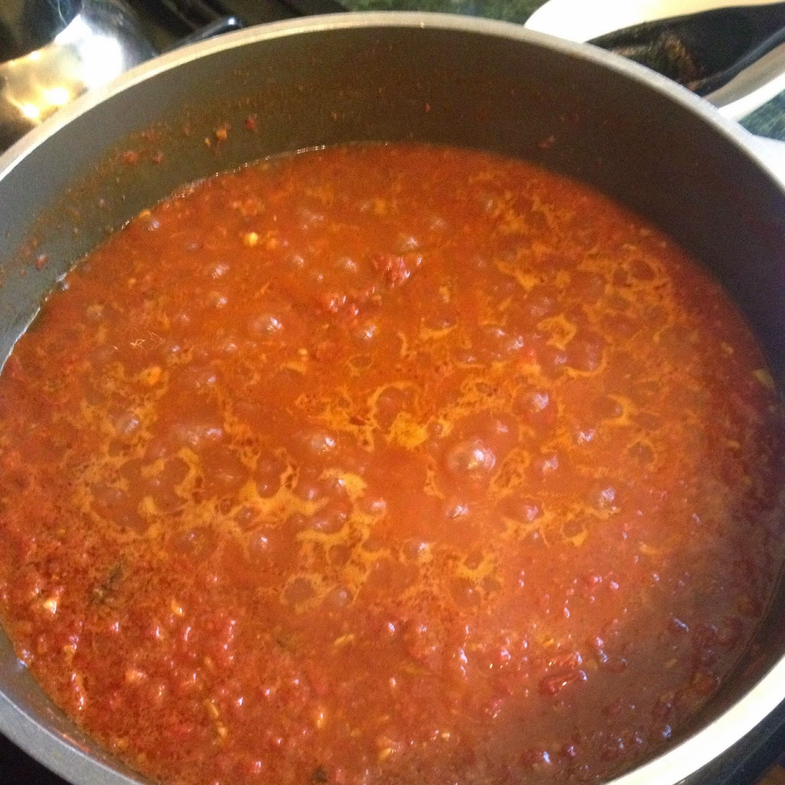 -Mientras el pollo está en el horno pueden preparar la salsa de tomate.