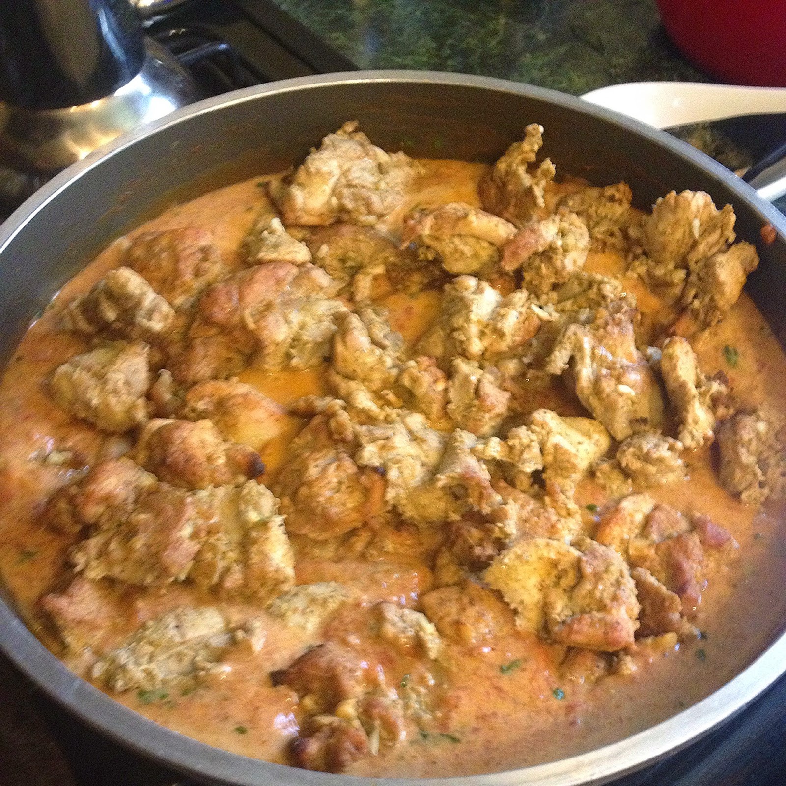 -Agreguen la mezcla de yogurt al pollo y mezclen bien.
