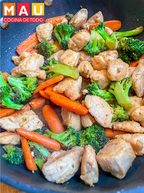 Lo rico de un stir fry es que se puede preparar con lo que gustes. Utilizar pollo, res o cerdo y cualquier mezcla de verduras. Yo usé brócoli y zanahoria.