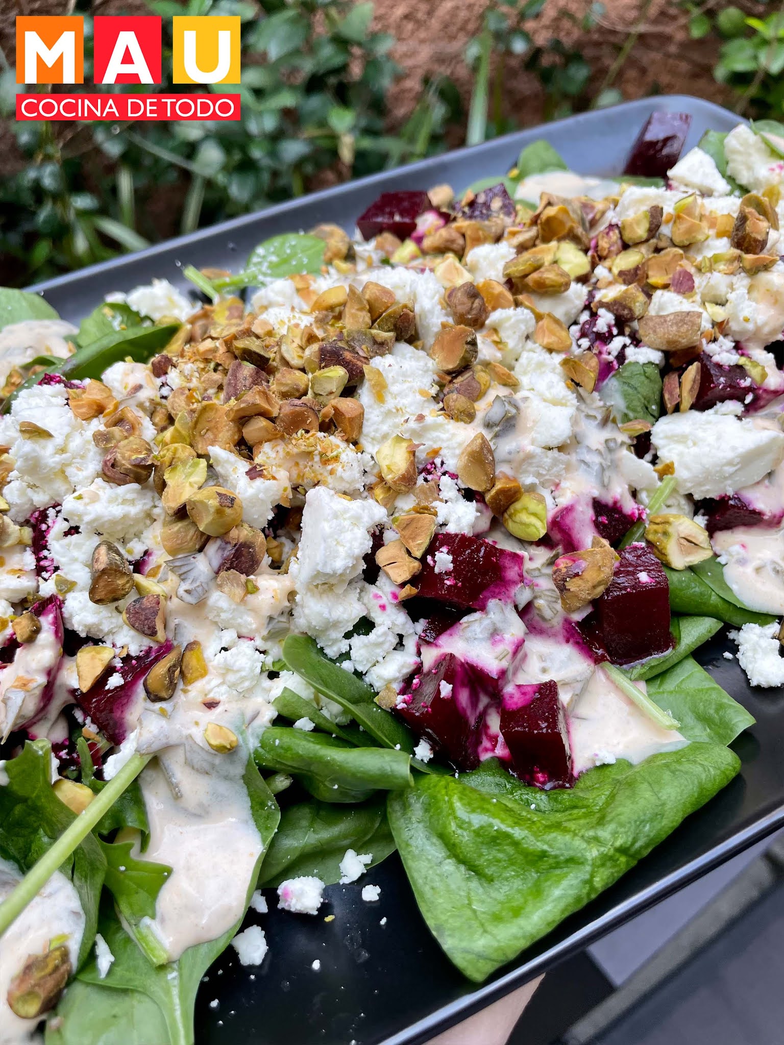 Ensalada de Espinacas, Betabel y Chimichurri Cremoso