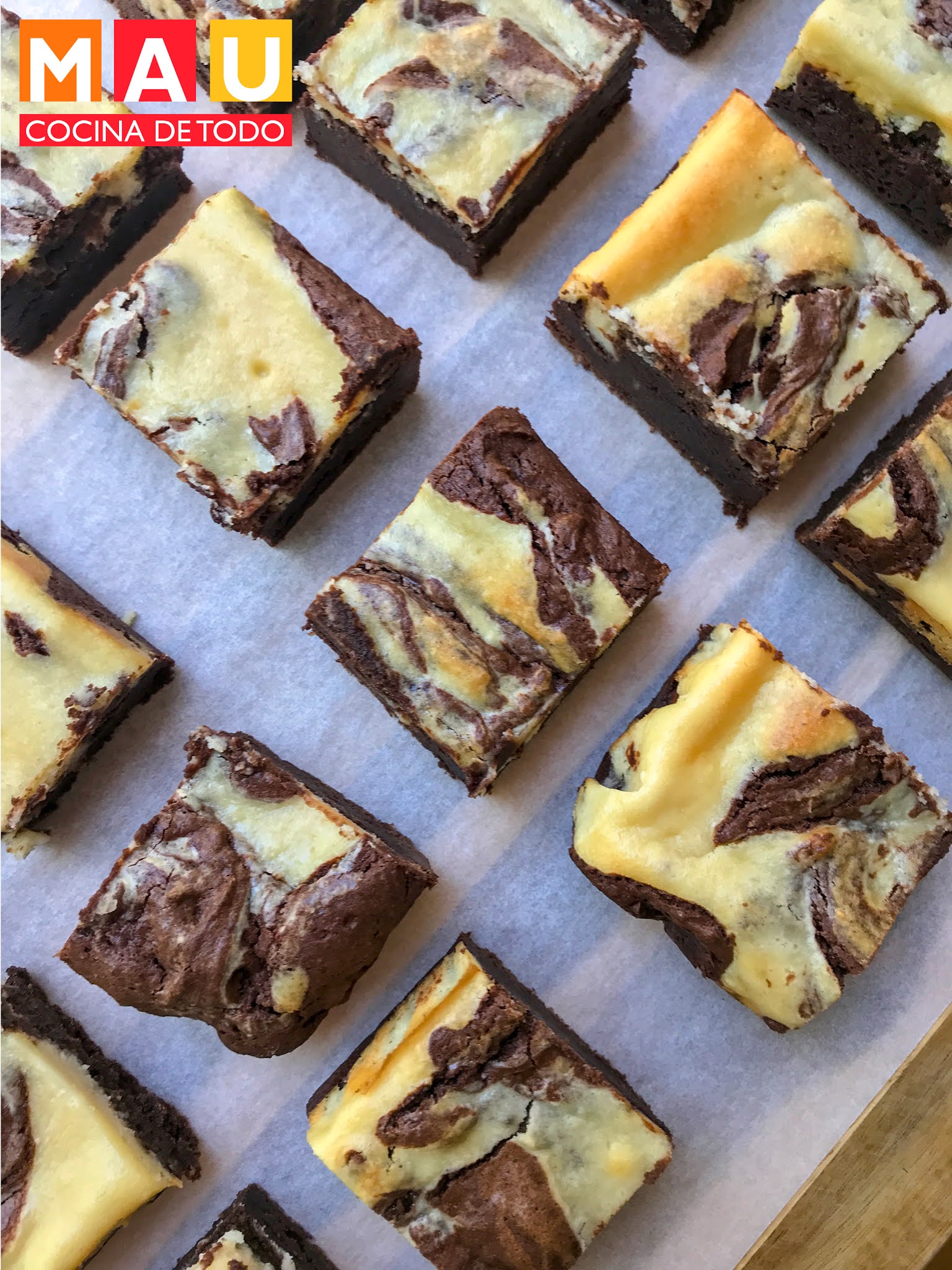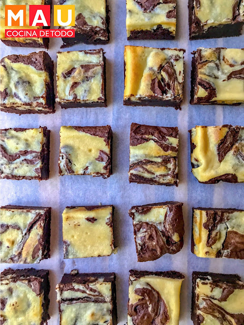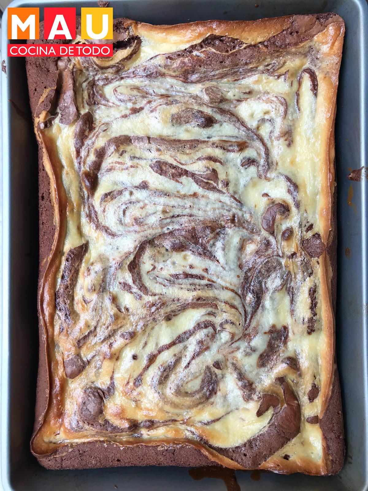 Pueden hacer los brownies sin el marmoleado pero vale la pena. El marmoleado es de queso crema y le da un sabor muy rico.