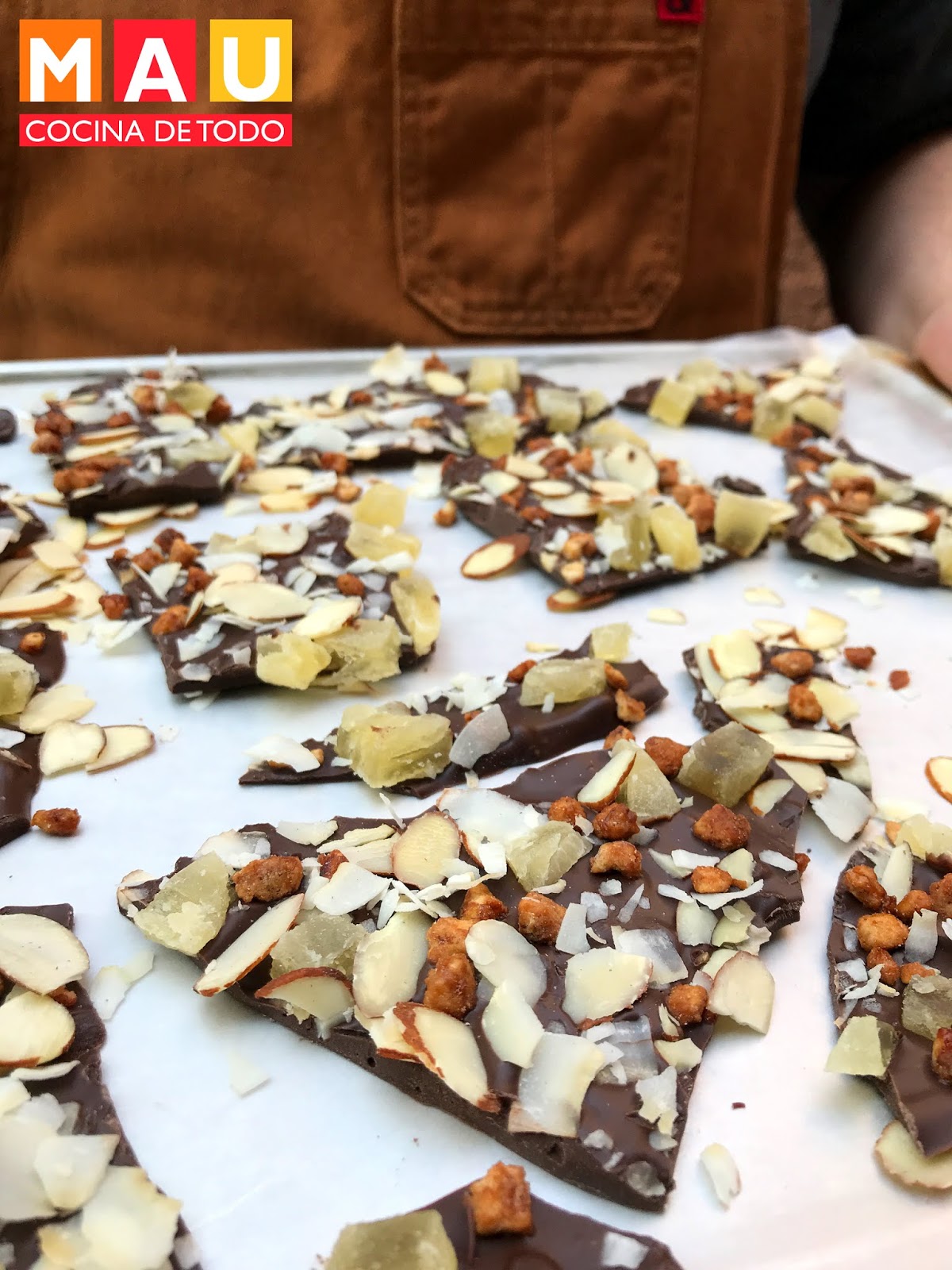 -Presiona ligeramente para que todo se pegue bien al chocolate.