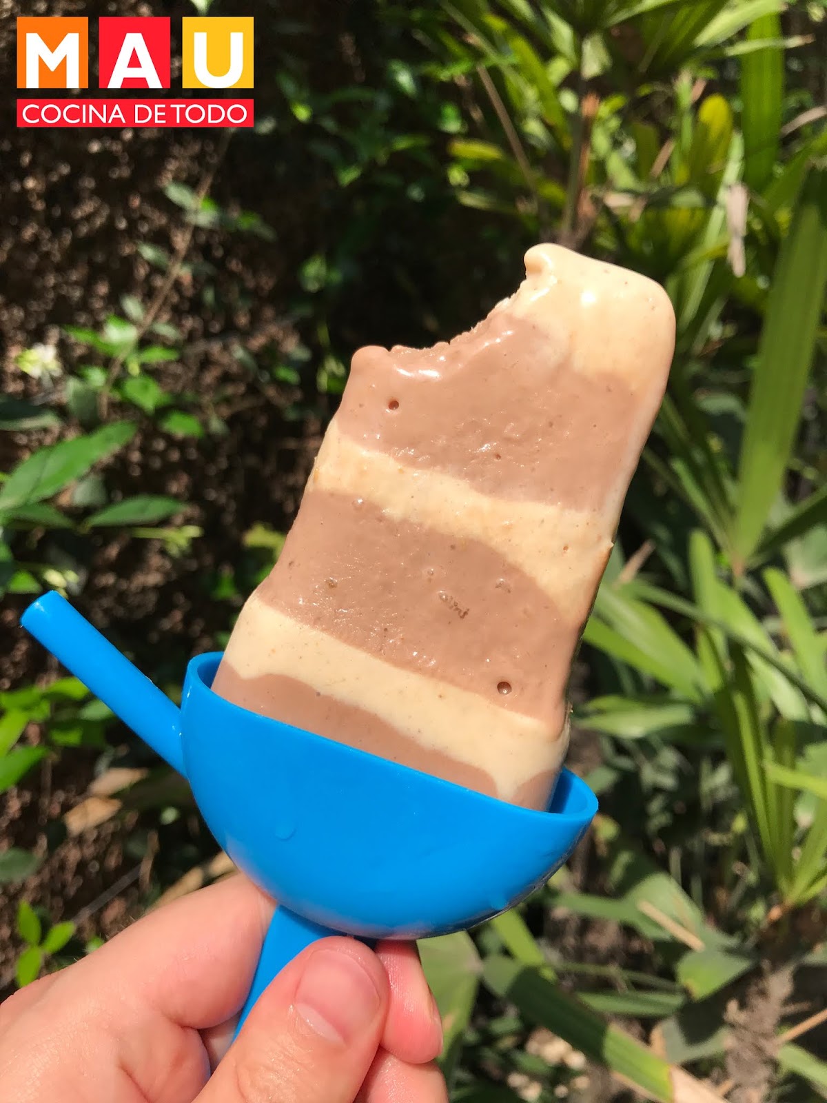 -En un molde para hacer paletas heladas agrega una cucharada aproximadamente de una mezcla y una cucharada de la segunda mezcla. Alternando sabores hasta llenar el molde.