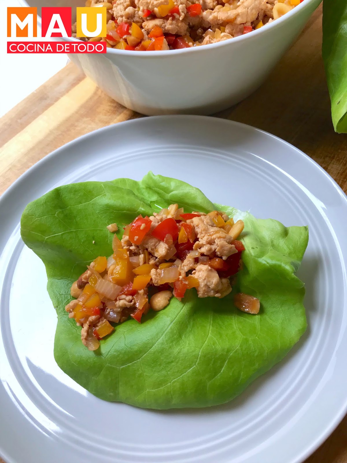 -Sirve el pollo en hojas de lechuga.